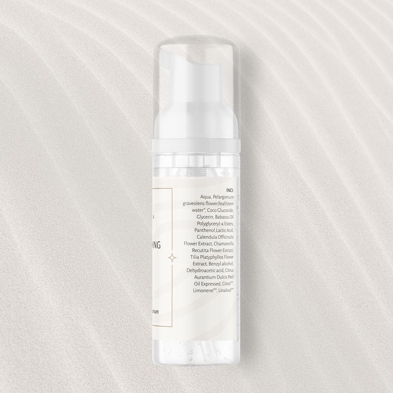 Aqua, Pelargonium graveolens flower/leaf/stem water*, Coco Glucoside, Glycerin, Babassu Oil